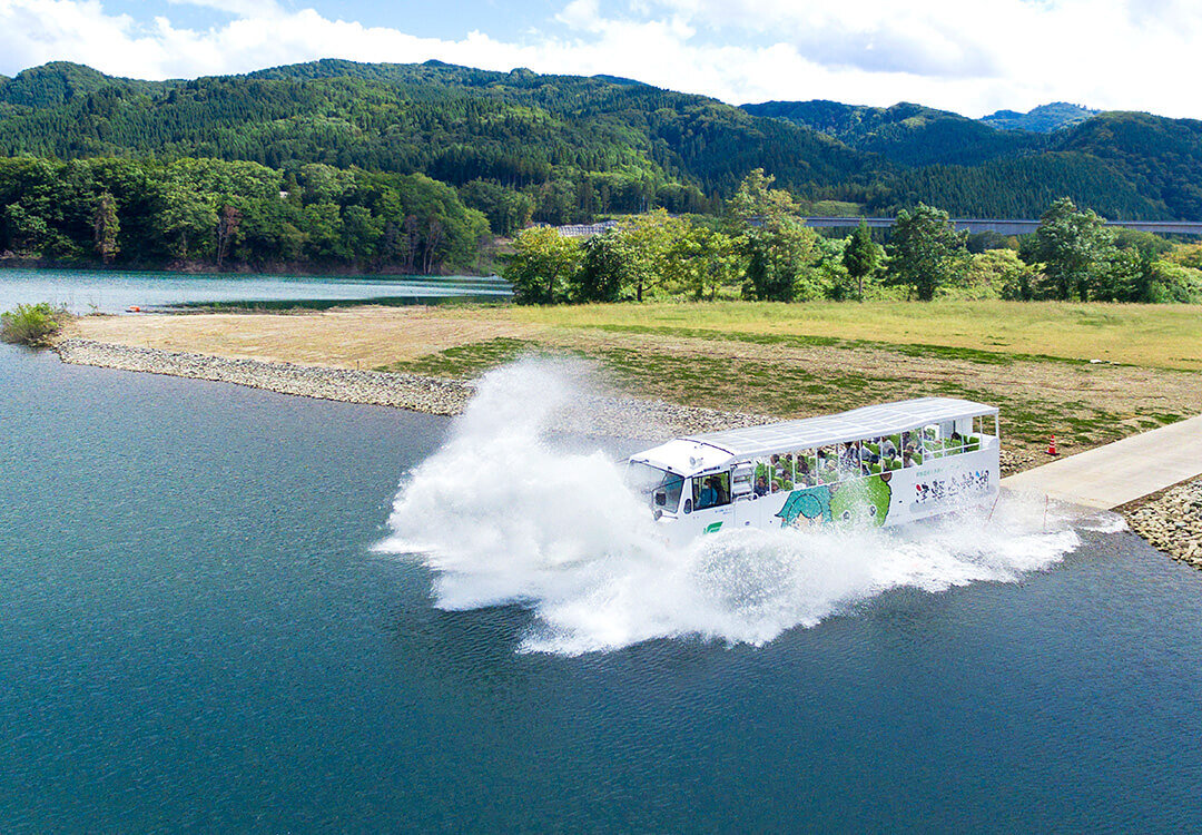 営業情報 2021年8月20日 水陸両用バスは現在臨時運休しています。(~9/3まで) 2021年8月19日(木)~9月3日(金)の間、水陸両用バスの運行を休止しています。 ダム湖の水位の関係で水陸両用バスの運行を中止しています。 ●運休期間:2021年8月19日(木)~2021年9月3日(金) 9月4日(土)より運行を再開する予定です。※水位が増えなければ運休を延長することも考えられます。 詳しくは水陸両用バス公式ウェブサイトをご覧ください。